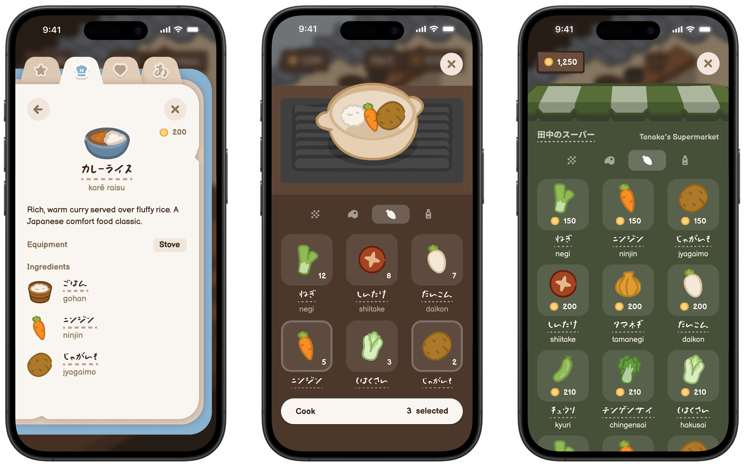 Players retained vocabulary like radish (daikon) after encountering them repeatedly across multiple contexts. When the same ingredient appeared on a recipe card, then in the cooking interface, then at Tanaka’s Supermarket, players naturally built recognition. This validated that vocabulary acquisition could occur without explicit translation drills.